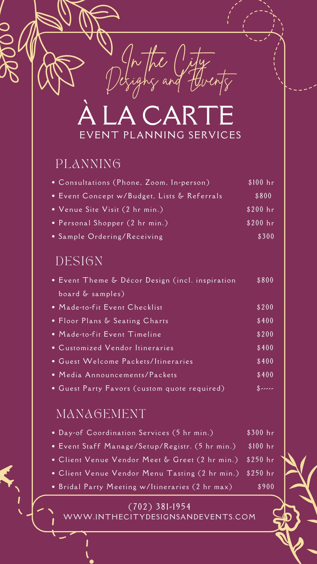 À La Carte event planning services allows you to have complete control over the level of support you receive. You choose only the essential assistance needed to flawlessly execute your event, from start to finish. Let us exceed your expectations by providing peace of mind and made-to-fit planning services.